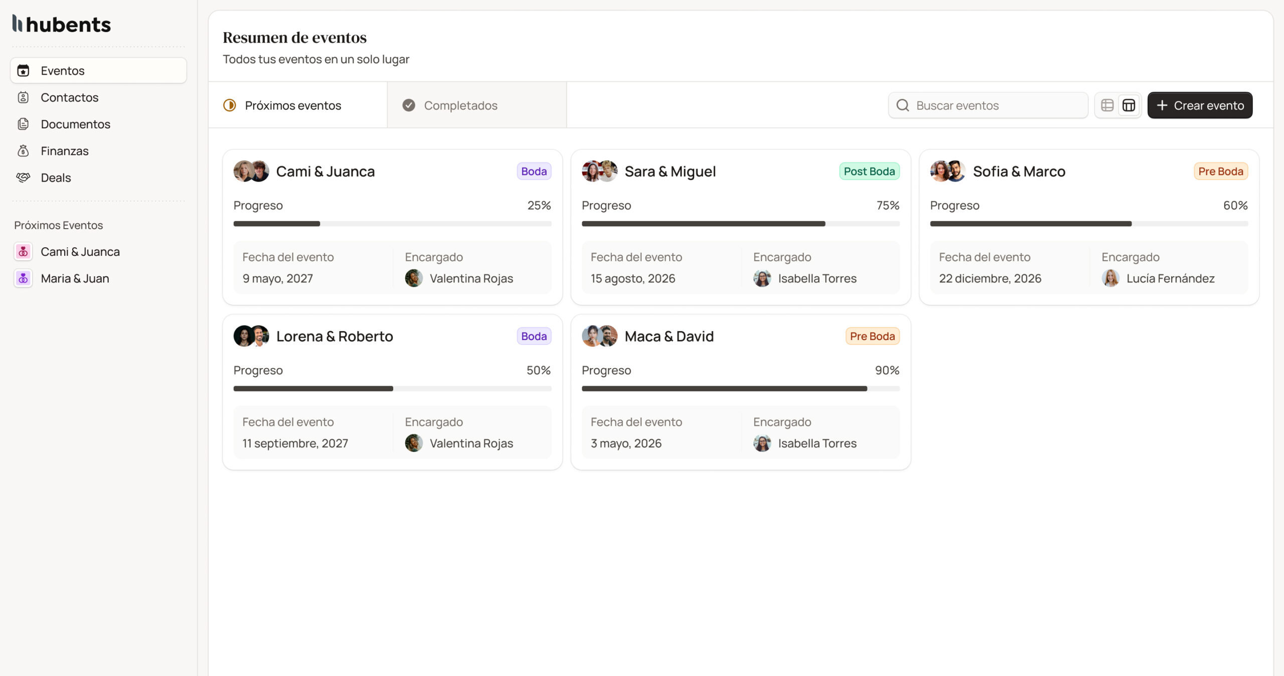 Hubents is a CRM + event management system created specifically for wedding planners and event organizers. Unlike generic tools, it organizes the event just as it actually happens: through live, collaborative, and connected tasks.
